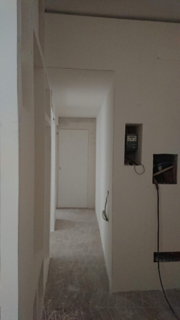 L’unica soluzione era ovviamente quella di trasformare la cucina esistente (allargandola per raggiungere i 9 mq minimi) nella cameretta per il futuro bimbo e sfruttare ogni centimetro a disposizione per il piccolo open space con angolo cottura. Un angolo cottura che però doveva all’occorrenza “scomparire” nel momento in cui quello spazio venisse usato in modalità lavoro ma senza ricorrere all’acquisto di costosissime cucine a scomparsa.